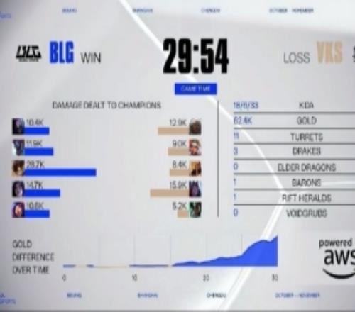 电竞体育10月24报道 S15全球总决赛瑞士轮BLG vs VKS的首局比赛上,拿到沙皇的VK...